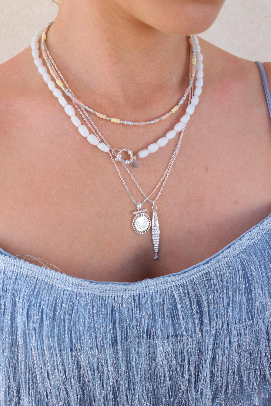 Big pearl necklace silver