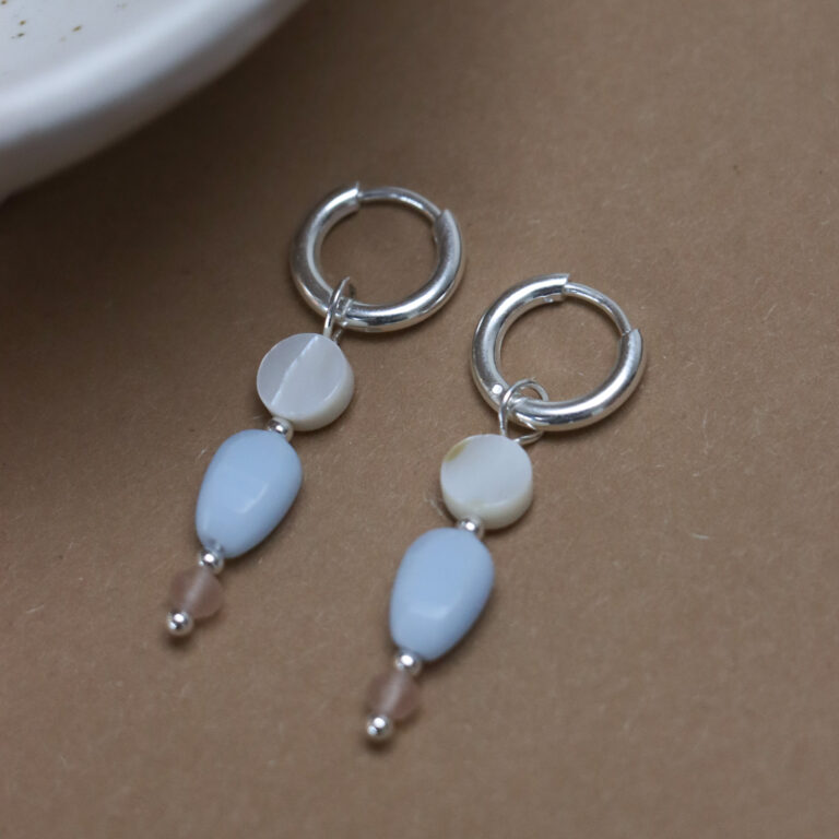 Pink marble hoop silver