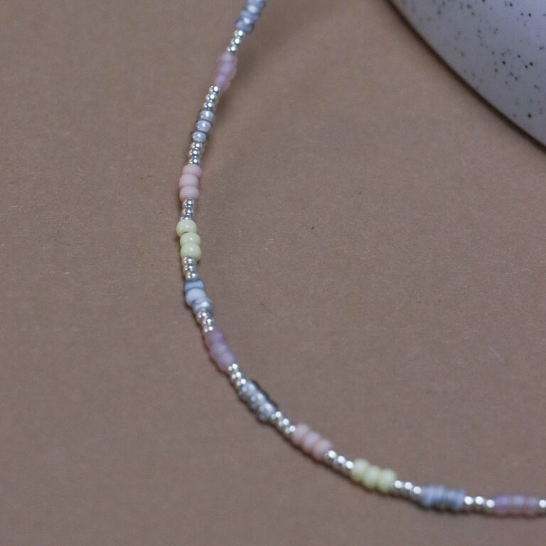 Pink rainbow choker silver