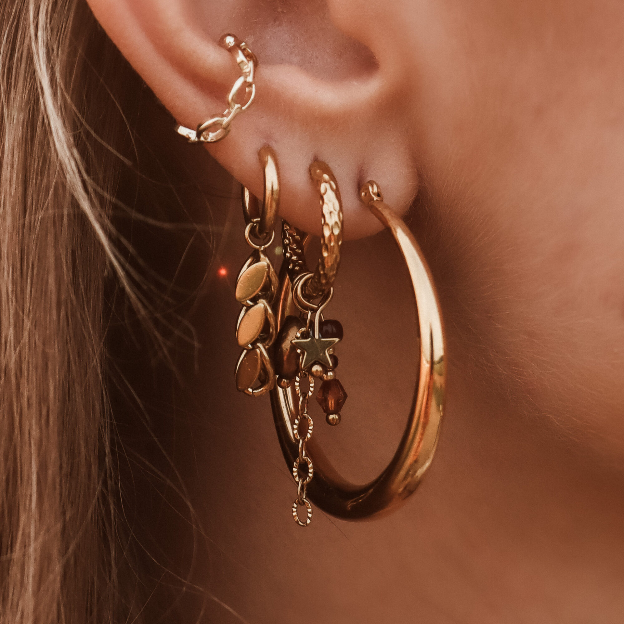 Onze oorbellen gaan per stuk, zodat je zelf jouw earparty samen kunt stellen en kan combineren op jouw manier! Draag je liever een set? Bestel dan twee items! Mix een chunky hoop met earstuds of met een hoop met hanger. De mogelijheden zijn eindeloos!