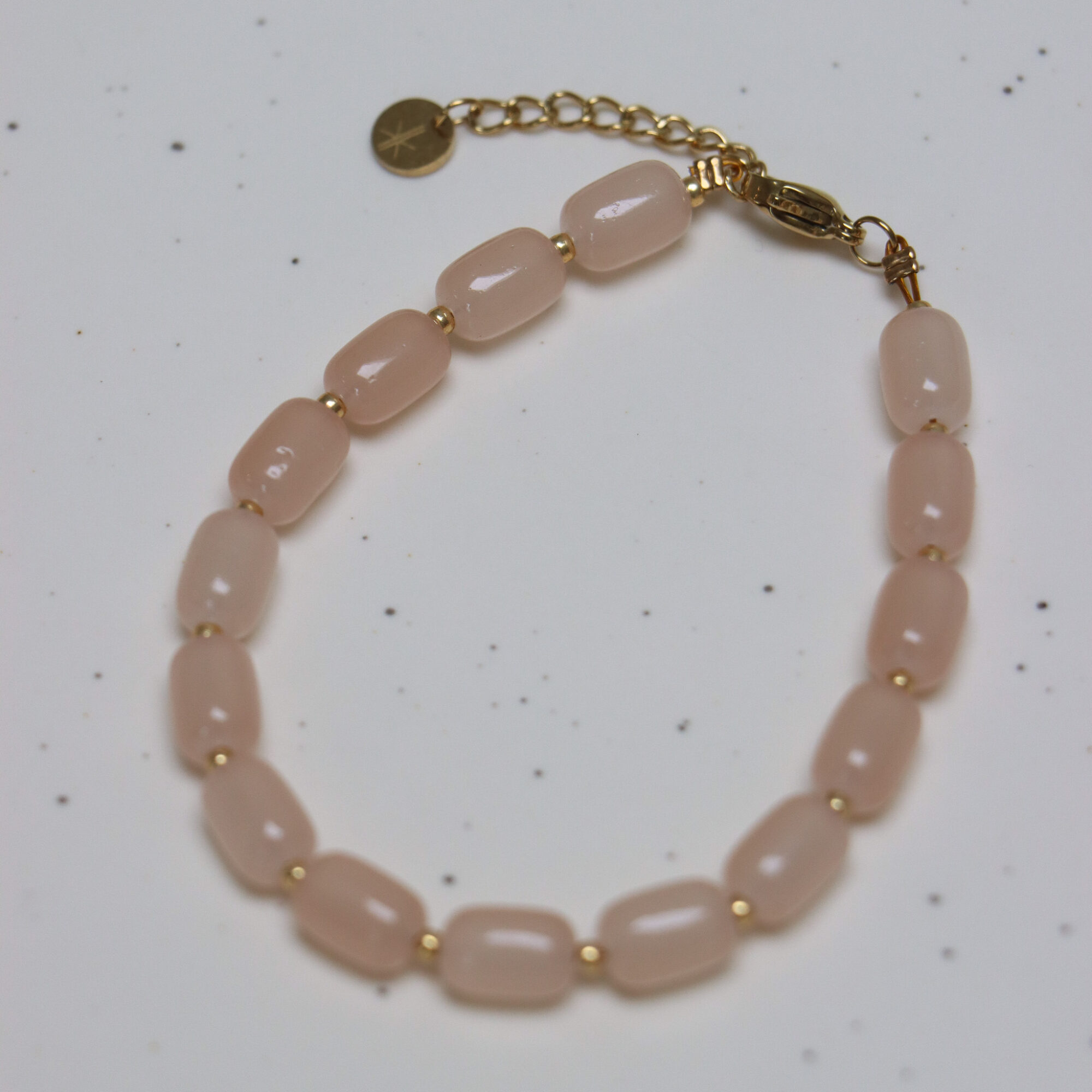 Met deze prachtige armband steel jij de show. Deze zachte kleur zorgt dat hij makkelijke te combineren is.