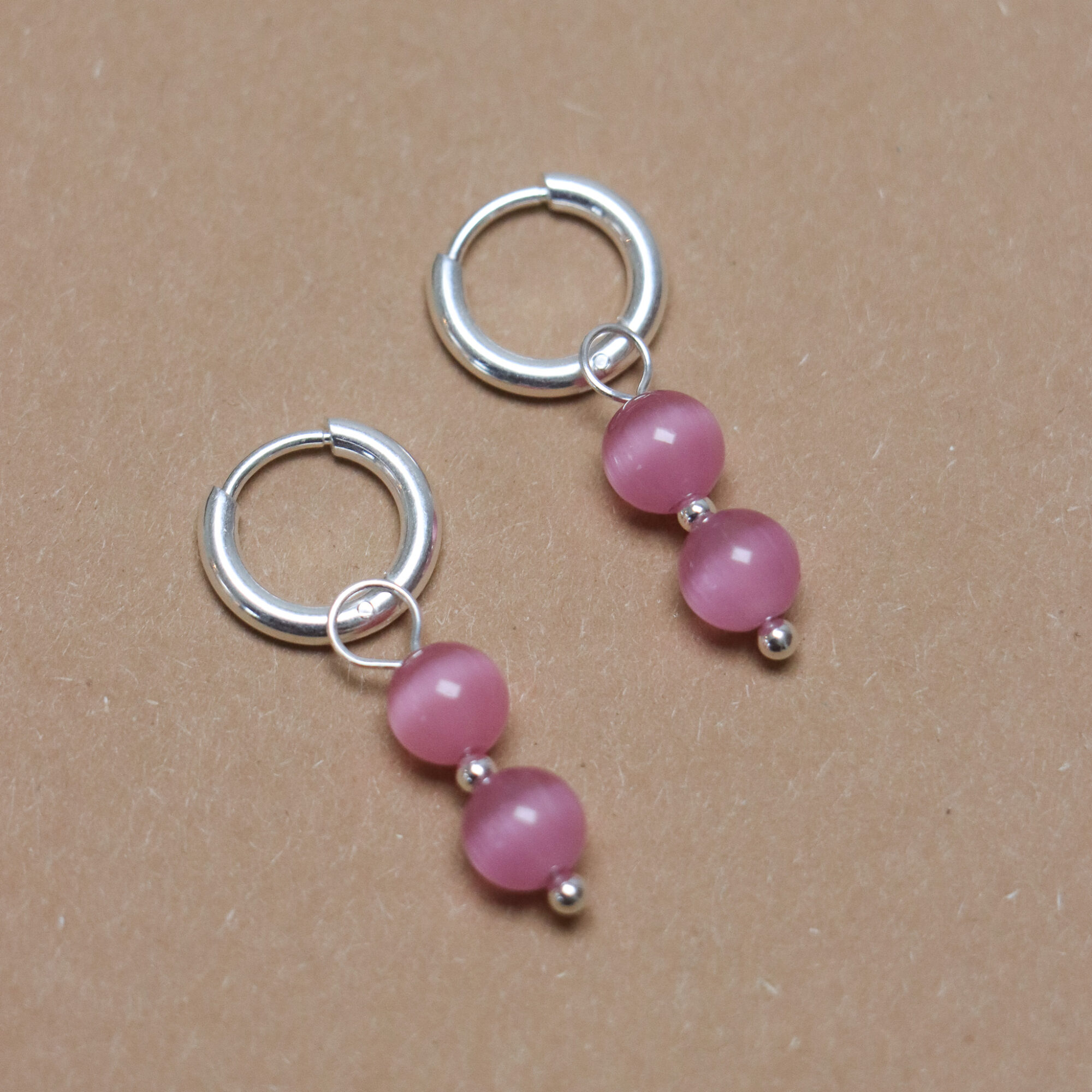 Pink cat eye hoop silver